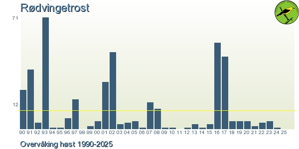 - For uncommon species and vagrants you can click on the artsobservasjoner.no-logo to display all observations of this species from the Jomfruland Obs. recording area.