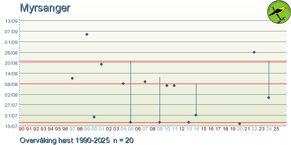 - For uncommon species and vagrants you can click on the artsobservasjoner.no-logo to display all observations of this species from the Jomfruland Obs. recording area.