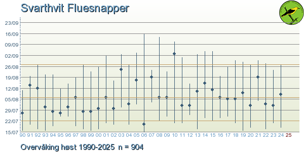 - For uncommon species and vagrants you can click on the artsobservasjoner.no-logo to display all observations of this species from the Jomfruland Obs. recording area.