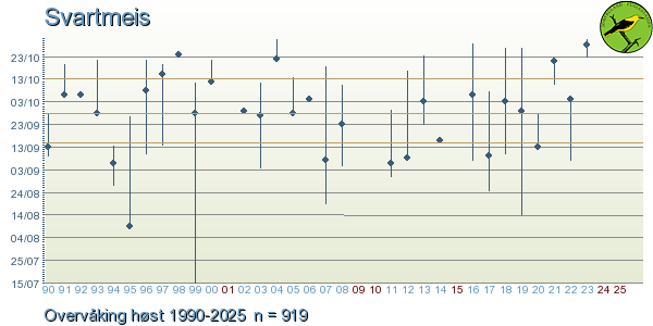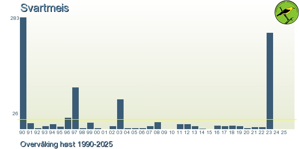- For uncommon species and vagrants you can click on the artsobservasjoner.no-logo to display all observations of this species from the Jomfruland Obs. recording area.