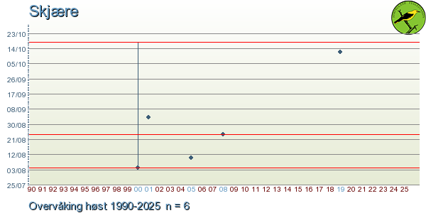- For uncommon species and vagrants you can click on the artsobservasjoner.no-logo to display all observations of this species from the Jomfruland Obs. recording area.