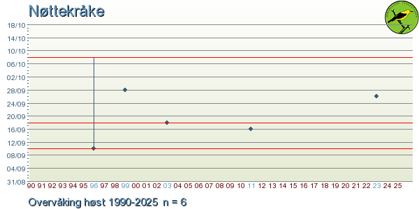 - For uncommon species and vagrants you can click on the artsobservasjoner.no-logo to display all observations of this species from the Jomfruland Obs. recording area.