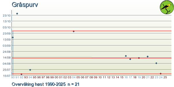 Her ser du resultater av merkeaktiviteten på Jomfruland Fuglestasjon. Du kan velge om du vil ha Dagstall (detaljerte merketall for hver dag), Månedslister (totalsum hver dag for en måned), Sesongdata (status for sesongen), Årslister (artsoversikt for et år) eller Artsliste Jomfruland fuglestasjon (Hele artslisten for merkede fugler på Jomfruland Fuglestasjon).