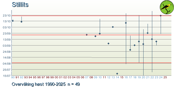 - For uncommon species and vagrants you can click on the artsobservasjoner.no-logo to display all observations of this species from the Jomfruland Obs. recording area.