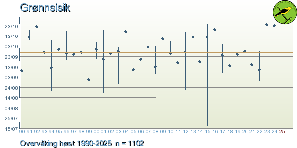 | Grønnsisik | Eurasian Siskin | Spinus spinus |