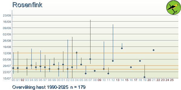 - For uncommon species and vagrants you can click on the artsobservasjoner.no-logo to display all observations of this species from the Jomfruland Obs. recording area.