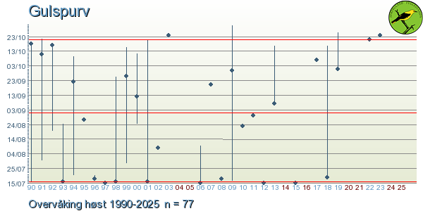 - For uncommon species and vagrants you can click on the artsobservasjoner.no-logo to display all observations of this species from the Jomfruland Obs. recording area.
